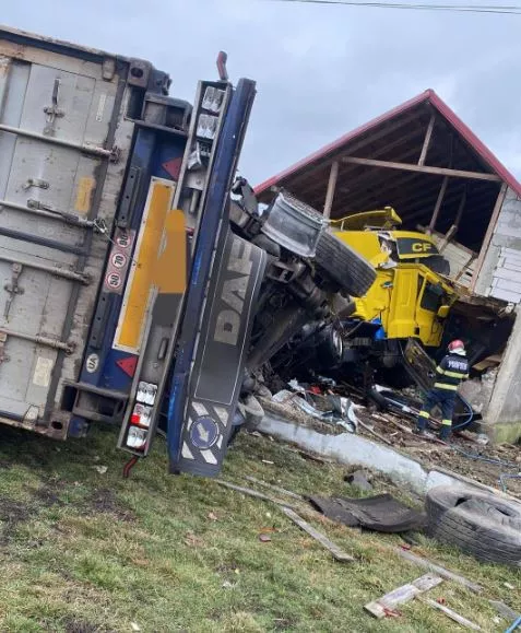 Un accident grav s-a produs duminică în comuna Filipești, județul Bacău, unde un camion de mare tonaj a părăsit carosabilul și s-a izbit violent de o locuință.