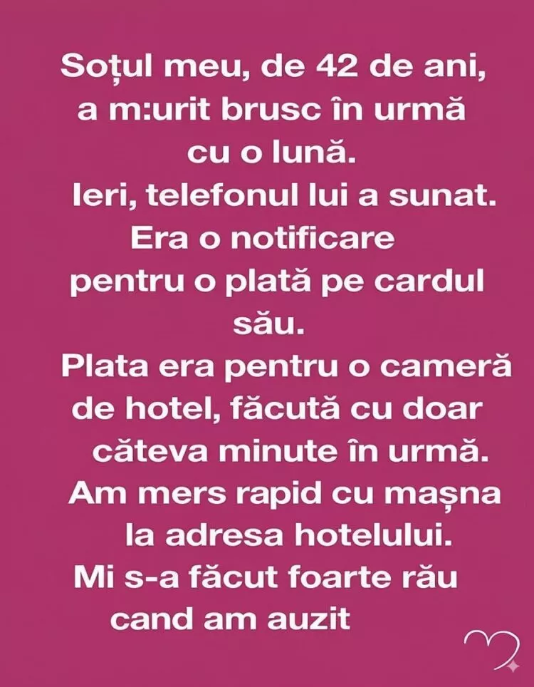 La o lună de la înmormântare, o notificare de plată cu cardul lui Alden pentru o cameră de hotel a alarmat-o pe soție: